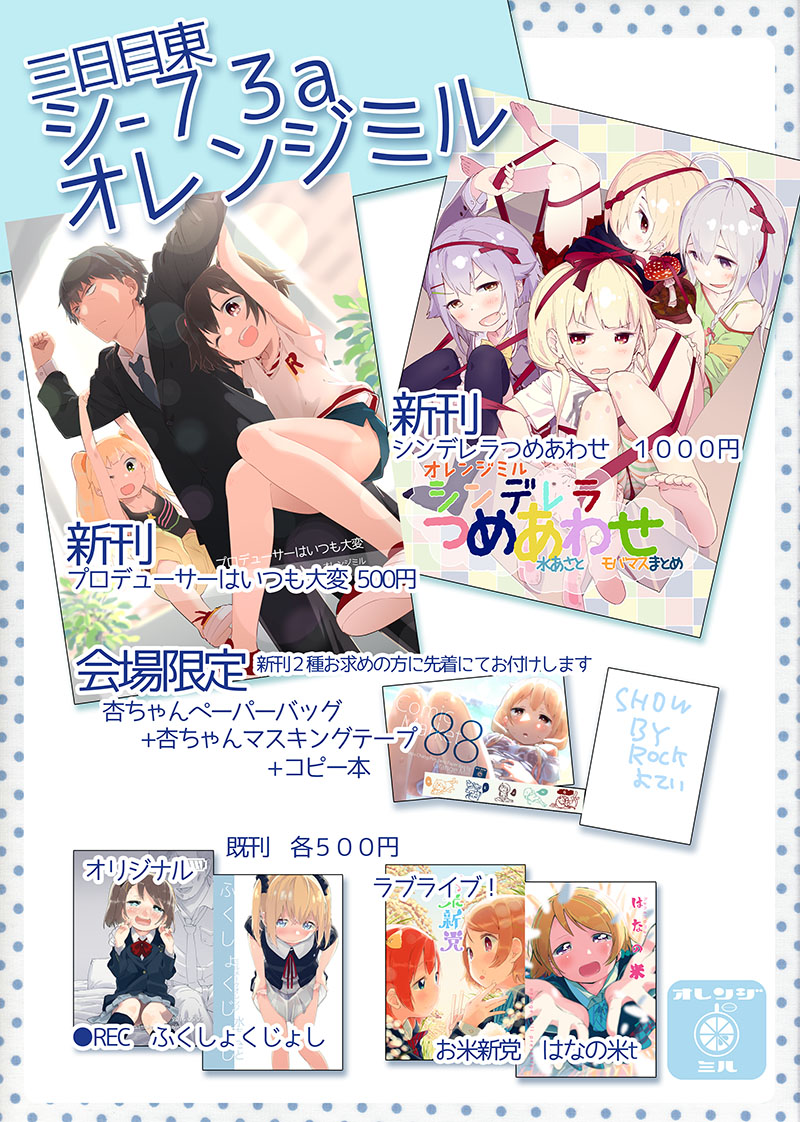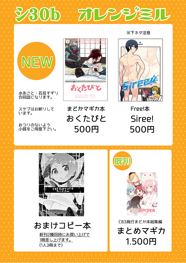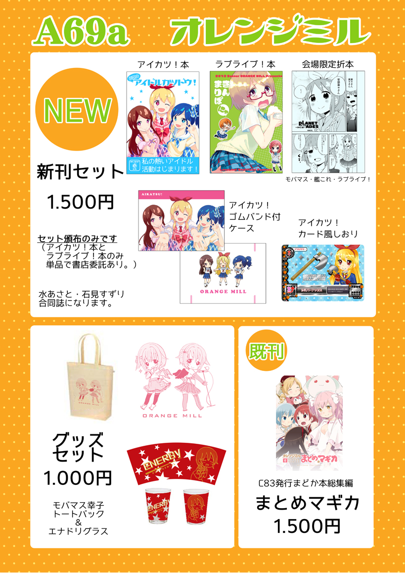 C84は2日目東A69a「オレンジミル」で参加します。